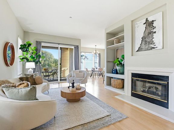 Experience this spacious, light-filled home in Brisbane's sought-after Viewpoint community - one of only a few residences offering beautiful vistas. Enter into a bright living room featuring lofted ceilings and a cozy gas fireplace, seamlessly connected to the large patio perfect for BBQs. The living space flows effortlessly into the chefs kitchen, complete with a gas range that vents out, ample cabinetry, and generous counter space. Adjacent is the dining area, ideally positioned to enjoy sweeping Bay views, while entertaining. Recent upgrades to the kitchen and two full baths enhance the home's modern comfort.