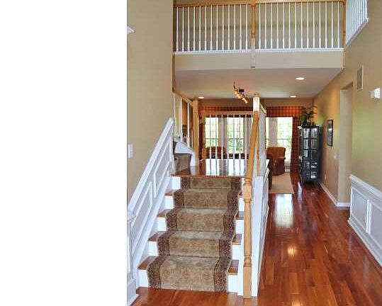 An absolute beauty, this 3790 SF home, excluding the finished basement is on 1.21 acre lot. Located on an exclusive circle street of beautiful homes, the house has views of rolling Preserved farmland. This home has been continuously updated throughout. There is modern open floor plan, gas heat, American cherry hardwood floors, a split staircase, a two sided gas fireplace, high ceilings and much more! The kitchen features a two tiered island with lots of room for stools. There are many great long windows across the back of the house, overlooking the meticulously landscaped, private rear yard. The lot backs to a 10 acre parcel, which cannot be subdivided and those owners are building their 'dream home'. All baths are like new including the master bath that was just completed. The master suite has a sitting room off if it, through French doors. All bedrooms are very spacious and there is a Princess Suite, plus a 'Jack and Jill'. The basement is finished and looks new as well. There is a great spot for a media room, just waiting for your equipment. Out back there is a maintenance free deck that is under roof and extends along the back of the home. It has pillars and looks like a southern plantation, with an outdoor fan. It's truly inviting! Both the house and the street are truly unique and exceptional. The street gets no traffic, other than the residents and their guests. Truly like living in a special place! Hurry! Won't last! (Note: There is a garage size shed with a concrete floor, as well)