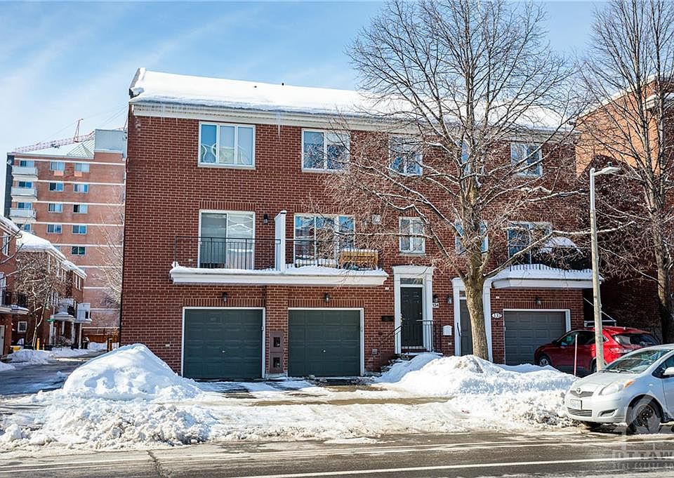 Beautifully laid out 3-bdrm, 2 bath, Domicile townhome. Situated across from McDonald Garden's Park and steps to the Market, this small enclave of executive towns is perfectly located and offers Domicile quality construction. Sunken entry foyer offers nice separation from the elevated open living & dining space with its patio doors, hardwood floors and cosy gas fireplace. Spacious eat-in kitchen features granite counters, island & generous storage and prep spaces. Enjoy access to outside with two balconies. Upstairs are 3 bdrms, including a large primary with double closets. At entry level is a great family room - or the perfect home office - with access to the back garden and a powder room, as well as laundry and direct access to the attached garage. An unfinished basement offers added storage space. This is the easiest of living in one of Ottawa's vibrant neighbourhoods! No conveyance of offers until Mar. 10th. Annual association fee $224/yr for landscaping, tree pruning & sewer.