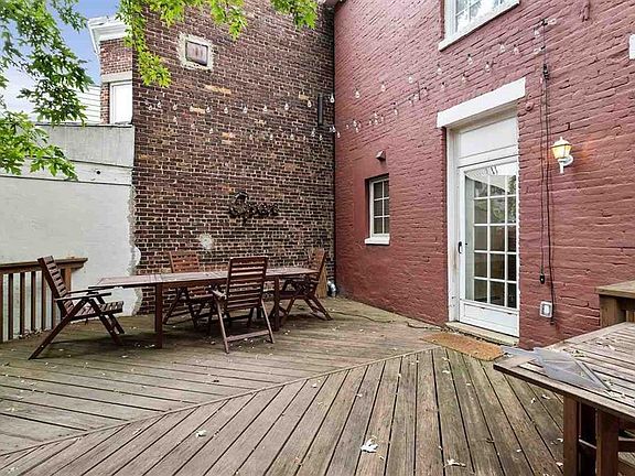 Nestled in the heart of Jersey City Heights, this charming and spacious three-bedroom row house with parking could be your next home. The sun-drenched first floor offers a living room with a wood-burning stove, a separate dining area, a cozy beautiful kitchen, high ceilings, and hardwood floors throughout, leading to a large private deck and backyard. Upstairs, you'll find two bedrooms, office, and a full bathroom with a skylight. The lower level is a fully finished living space with a separate entrance, ideal for a family room, guest suite, or third bedroom, featuring exposed brick, a wood-burning stove, a wet bar, full bath, laundry and utility room. This beautiful home offers an enviable location near local cafes, restaurants, and direct NJ Transit bus plus easy access to the Congress Light Rail Station.