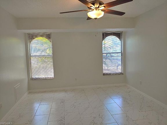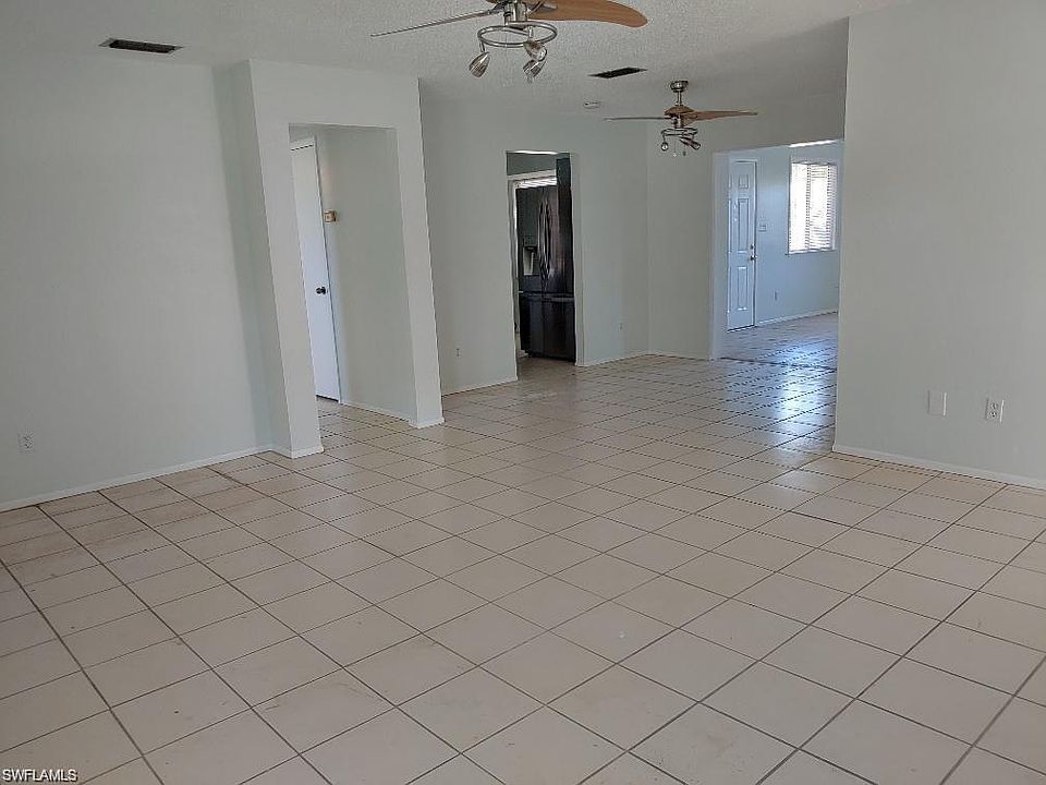 VERY ROOMY 3 Bedrooms 2 full updated bathrooms with his & hers sinks in master bedroom that can easily handle a King size bed plus lots of furniture. Large walk-in closet with his & hers sections. Newly remodeled Kitchen including stainless steel dishwasher, larger than normal French door refrigerator, double deep kitchen sink with new style one handle faucet & sprayer combination and pantry in the kitchen besides lots of extra indoor storage throughout the house. Family room which leads outdoors to the large covered patio in the chain link fenced in back yard with fruit trees and Star Fruit. New roof with extra insulation. Garage with built-in work bench plus washer/dryer hookups. ONLY steps away from the Morse Shores Shopping Plaza close to I-75 and the LeeTran bus line. First, last and security required before moving in. $4,350. 2 year lease. Pets allowed with deposit and insurance. Available mid November.