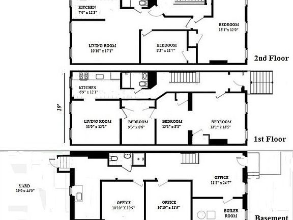 Fully renovated two family townhouse with lower level office/storage space. Configured as (2) - Three Bed/1 Bath apartments and rear private yard. Ground floor Italian style finishes, washer/dryer, french doors, numerous closets, ceiling fans and mini-split air conditioners throughout. 2nd Floor unit full renovated with all new stainless steel appliances and min-split air conditioners throughout. 5.1% Cap Rate - great investment with upside and air rights (2,900 SF) - add a floor!