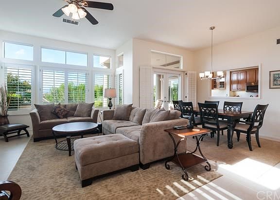 Beautiful, very upgraded one-level, ground floor ocean view condominium in South Laguna Niguel's prestigious Riviera community. This premier Bear Brand development sits up high on the hill and boasts great ocean and sunset views. Open, light and bright floor-plan gets great afternoon sun and evening sunsets. Home has been remodeled with new kitchen appliances, new stone flooring, paint, new air conditioning, new windows, blinds, shutters, light fixtures, ceiling fans, door hardware, built-in custom closet in master, upgraded master bathroom, and new carpet in bedrooms. Special 'all home' heating gas fireplace with custom mantle and storage for electronics too. The lovely, open kitchen leads to an eat-in area and pass-through open to dining room. French doors off dining room, kitchen and master bedroom for fabulous indoor/outdoor living. Two-car direct access garage with plenty of storage leads to indoor laundry room. Community pool, spa and private resident only gate leads to nearby Ocean Ranch Village by way of Camino Del Avion. Ocean Ranch has movie theatre, great dining and shopping! Property is minutes away from St. Regis Resort & Spa, Monarch Links Golf Course, Salt Creek Beach, Ritz Carlton, Dana Point Harbor, Laguna Beach and more!!