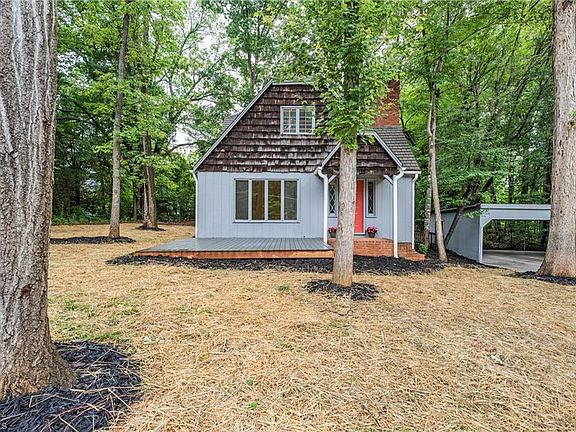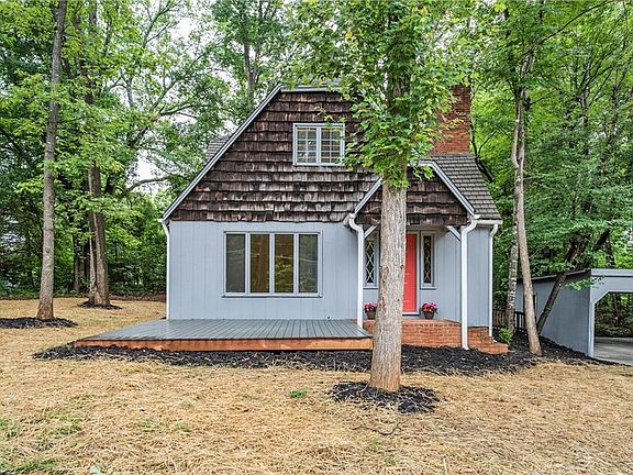 You don't have to go very far to enjoy the slope-side feel of a charming chalet! This Mocksville cutie is convenient to restaurants, shopping, and is only two minutes from I-40. With a primary bedroom on the main level that features a double vanity, shiplap accents and a custom tile shower, as well as two upstairs guest rooms, there's room for everyone to enjoy this super-cute hideaway that's still close to it all! Enjoy cozying up with your favorite book or piping hot cup of coffee in front of the great room fireplace, or enjoy the outdoors with a hammock in the freshly-sown yard. The kitchen is updated with butcher block counters, new garbage disposal, a wine rack, and stainless steel appliances. Freshly-painted inside and out—including the 3-car carport—the house also features new doors, door hardware, and a brand new concrete driveway, with a new roof scheduled to be installed soon.