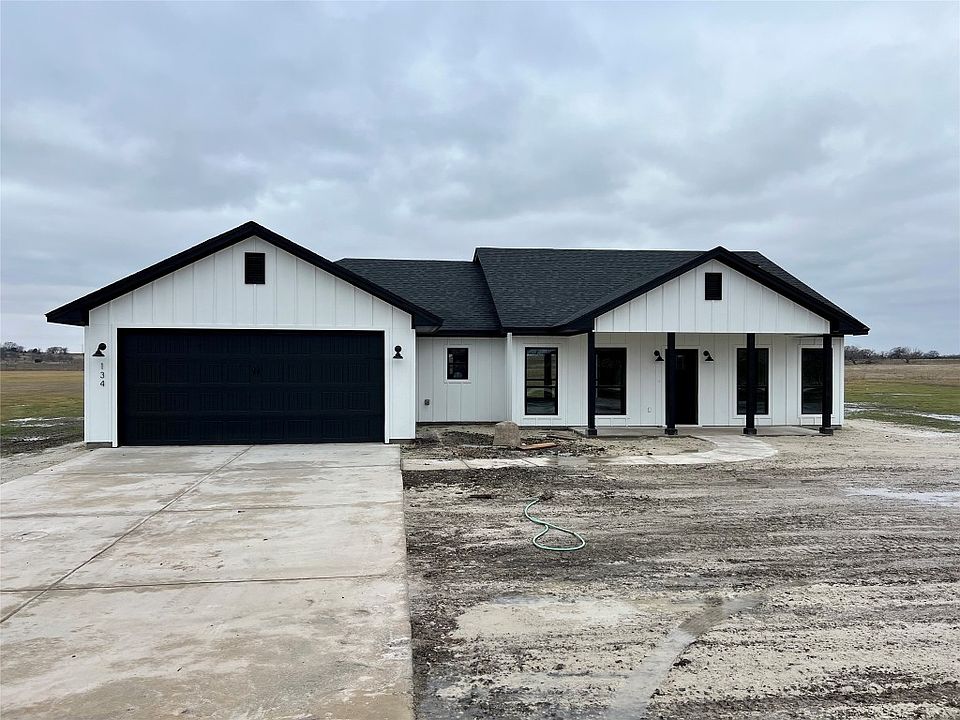 Beautiful white farmhouse inspired home on beautiful two acres in tucked away community of Greenwood. One of only a few new homes in this area as most of the properties close by are large ranches. Only 15 minutes from Decatur and 40 minutes from Alliance. This home features stainless steel appliances, black exterior windows, large walk in pantry, shaker cabinets, gold and black modern fixtures, great open floorpan, water well and septic. Perfect spot to get away from the crowded city neighborhoods but still be very close to town. Enjoy breathtaking sunsets over the neighboring ranches from your back porch. NO HOA!, NO CITY TAXES!