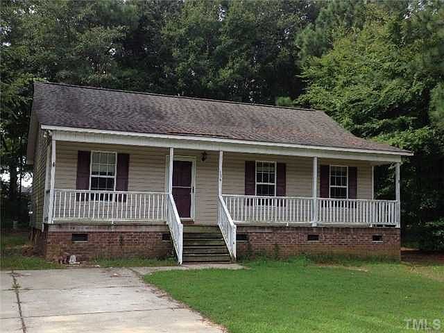 Cozy ranch plan with a full front porch! 3 bedroom 2 bath on a nice lot with a concrete drive and a patio in the backyard. Easy access to I-95 and I-40. fresh paint and new flooring. Brush nickel fixtures. Blinds in the rooms. Ready to move in now.