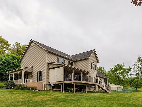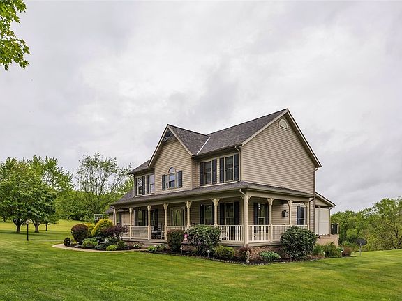 Private 3.19ac lot w/million$ view home to Custom Blt beauty w/covered wrap-around porch&covered rear deck w/fans,lights.New roof 2020 &lush landscaping makes super curb appeal.Oversizd 3-car att grg w/elec car charger&new grg doors.Steps from grg lead to low lev of home.2 etched sidelghts&door lead to spacious foyer w/crwn.Natural light from 7 windows pours into great rm w/marble surround fireplace.Access fabulous deck from office area or brkfst nk.Form DinRm w/hardwd&crwn.Designer cen isl/brkfst bar kitch w/tile bksplash, warm white cabinets,granite counters,stainlss appliances,bayed morn rm w/etchd glass door to amazing deck.Take front or back staircase up&be impressed by 4/5 BRMs.Master w/fan,walk-in,new wood-like laminate floor&updated priv bth w/soak tub, separate showr&dual vanities.3 BRMs w/fans,wood-like laminate flr,1 w/Murphy bed&walk-in.Vltd game rm w/fan,elec fp&huge closet cld be BR5.New hall bth.Updatd 2-Zoned heating.Small fencd area,amazing lot.SV schools.Clean&move in