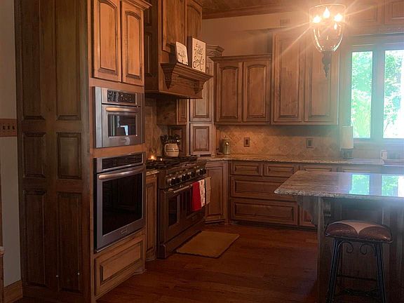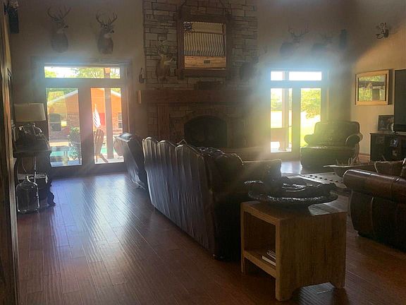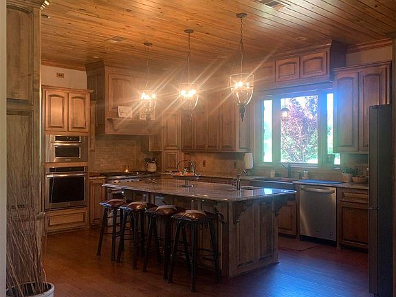 Stunning custom built home with 12 in around and 8-9 foot deep footings, 2X6 walls, 6ft spray foam wall, spray foam insulated and extra wide porches, exterior is finished off with Old St Louis Style Brick. This magnificent home has so many beautiful features including copper sinks, copper bath tub, large walk in shower, all custom cypress wood return air vents and switch plate covers, custom chandeliers, with rawhide lamp shades, hurd windows, 36 ft ceilings, brown maple cabinets, pecky cypress trim throughout, blue pine ceilings, and tons of storage space! Heat the entire home with the fresh air intake insert that is made to be like a heat furnace and recycles fresh air from outside. Entertain your guest outside on the stunning extra large porches equipped with surround sound and wired for tv or enjoy your exquisite gunite pool, hot tub, and fire pit. Other outside features include a pool house that is 90% finished, plumbed for a full bath and all electrical finished. 30X50 mancave with heat and air, large hunting closet, shed with a roll up door, skinning shed and sink! Did I mention you could hunt from your back yard!!! This owner has killed a 158 inch Deer and a 146 inch Deer and has pictures of a 160 inch in the front and back yard!