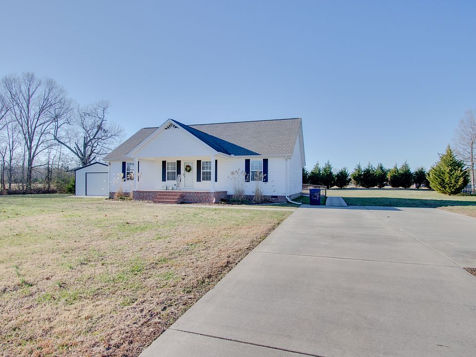 A beauty of a house this one! This home features 3 large bedrooms, 2 full baths with living room and spacious kitchen. Split bedroom plan with a sense of an open concept of living room & kitchen. Located at end of a cul-de-sac with concrete driveway and a 26x20 detached spacious one car garage. Deck on back of house with a newly built oversize ramp. Large backyard has lined tress for privacy. Stainless kitchen appliances remains and blinds. HVAC is about 2 years old. Gorgeous bamboo floors.