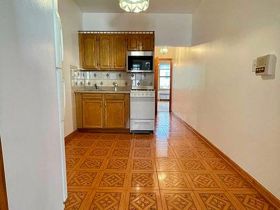 Railway style 1br with two private entrances to the hallway. Hardwood floors and built in closets in both rooms. Kitchen has a space for a table and a microwave over the range. Bathroom has both shower and tub. Heat and water included Ready to move in now. No dogs.
