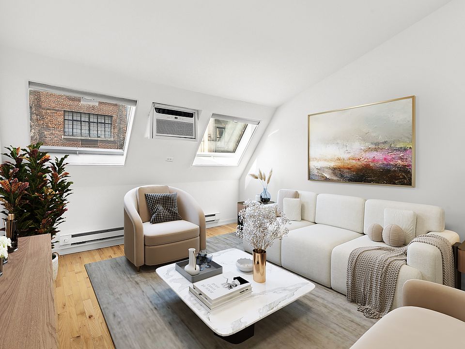 AVAILABLE FOR AN OCTOBER 1ST OR OCTOBER 15TH OR NOVEMBER 1ST LEASE START BUT SHOWING NOW. SORRY NO DOGS BUT CATS ALLOWED. Top floor one bedroom available in great Gramercy location. One bedroom with hardwood floors and kitchen with granite counter tops and stainless steel appliances including dishwasher as well as hallway closet. Living room facing South with room for a living area and a dining or desk nook and two large windows. Bedroom can hold a Full or Queen sized bed with custom closet and two skylights. Part time doorman building Seven days a week from 10AM-8PM with laundry on the floor, elevator, super on site and cat friendly. Fantastic Gramercy location. Fees required to move in: First month rent of $4650, One Month Security Deposit of $4650, $20 Credit Check per applicant. During the lease term the tenant may be charged the following fees, which may be subject to change based on the Landlord's actual expenses: Late Charge, Bounced Check Fee, Replacement Key Fee, Replacement Smoke Detector and Carbon Monoxide Detector, Replacement Gas Detector.