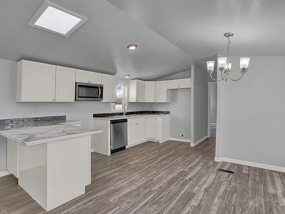ADORABLE MOVE IN READY HOME! Completely remodeled!! New includes the following: drywall, insulated skirting, flooring (Luxury vinyl plank & Carpet), bathrooms (lighting, vanity and sink, toilet, shower/tub, and tile surround, kitchen cabinets and counters, kitchen appliances, interior/exterior paint and more!! Home is in move in ready condition! Mobile home is purged ready for financing. Gutters to be installed prior to closing. New Gas pack furnace & AC.