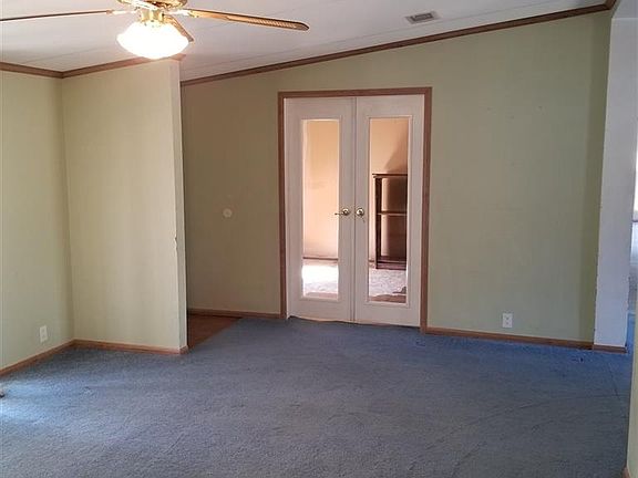 3 Bedrooom, 2 Bath, Mobile Home with Block Underpin. Home is very spacious, with a big kitchen, living room, and Great Room. The Master bedroom is huge with a walk in closet, as well as a private master bath with his and her sinks, soaking tub, and stand up shower. The homer rests on 1.6 acres of land, has a detached one car garage/workshop with electric and concrete floors. There is also a two car detached carport on the property. The HVAC was replaced 2 years ago. The home has a large concrete covered front porch and large rear deck perfect for family cookouts. The home could use some cosmetic upgrades but overall is a solid home. The home is sold as is.
