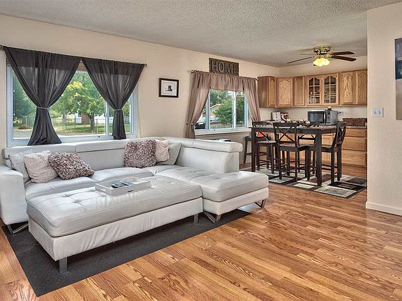 The rare four-bedroom Fruita home is on the market, and it has been nicely renovated and offers the possibility of RV parking! Step inside and you will find warm and durable wood laminate flooring in the formal living room as well as a wood stove insert in the classic brick-surround fireplace! The dining area is open to both the living room and the kitchen, and the kitchen offers lots of cabinet storage and counterspace! In addition, this home offers a separate family room, and all the appliances, including the laundry machines, stay! Out back, you'll find a big, private back yard that is fully privacy fenced and dotted with mature shade trees, as well as a spacious covered back patio! The RV gates are already in, and the garden shed and the garage shelving stay! Come see this home today!
