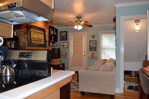 - Ceiling Fan(s), Wood Floors, Floor Plan - Traditional, Family Room Off Kitchen