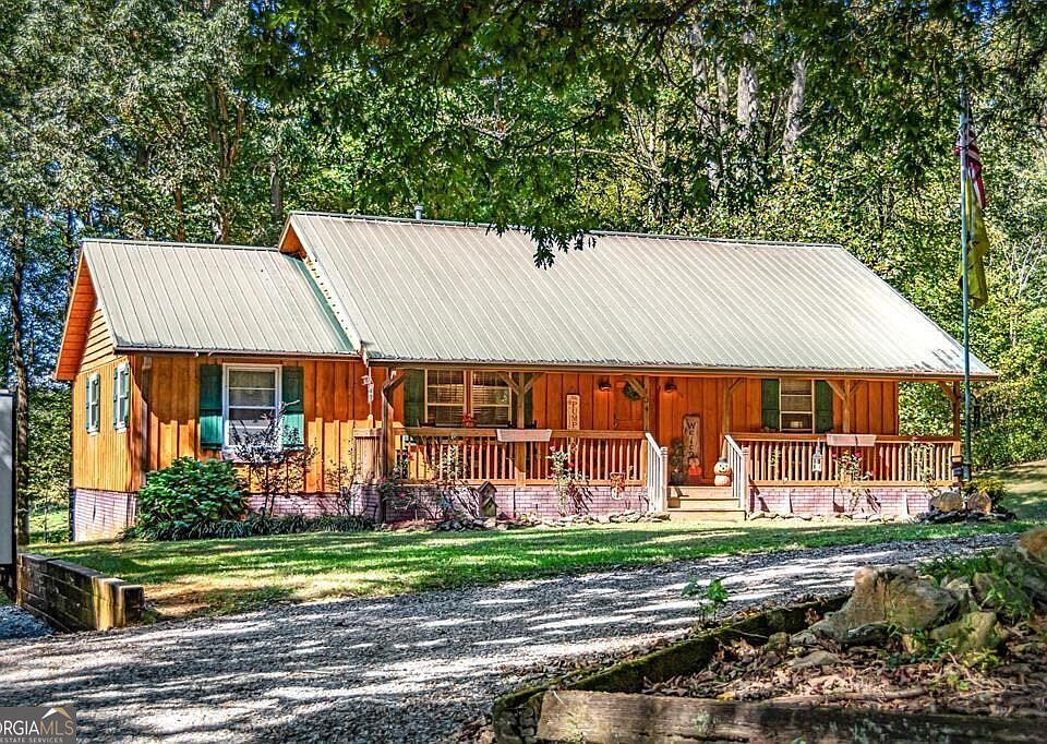 Your North Georgia homestead dreams start here! Welcome home to this rustic 3 BR/2 BTH RANCH on 5.79 UNRESTRICTED SERENE ACRES OF GENTLY ROLLING LAND with ADDITIONAL BUILDING SITES, set in a QUIET, AND PICTURESQUE setting. Enjoy a large covered front porch area to take in these peaceful surroundings. Inside, a LARGE KITCHEN features GRANITE COUNTERS, NEW CABINETS, TILE BACKSPLASH, GAS STOVE, BREAKFAST AREA, and STAINLESS APPLIANCES, complemented by warm PINE WALLS AND CEILINGS. The LARGE MASTER SUITE offers VAULTED CEILINGS, HIS & HER CLOSETS, AND AN ENSUITE BATH WITH TILE SHOWER. There are two more bedrooms on the main level and a full bath with pedestal sink and tile shower/tub combo on the main. A FULL FINISHED BASEMENT provides additional living/storage, a LARGE LAUNDRY with WASHER & DRYER and 2 FREEZERS, an optional workshop area, and a large room perfect for a movie room. Extras include a SOLAR-POWERED GENERATOR, BUILT-IN SAFE, BACK DECK, and LOW-MAINTENANCE METAL ROOF. Outside, enjoy flat and gentle land for gardening, and space perfect for animal lovers, an RV HOOKUP, and an OVERSIZED METAL GARAGE WITH ELECTRICITY-ideal for parking, a workshop, and storing equipment. This property is located in a great location close to vineyards, hiking, Amicalola falls State Park, mountain biking, apple houses, Reece cider company, and more - don't miss this rare opportunity to own this great and unique property with so much to offer!
