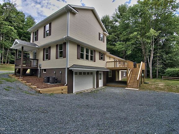 BEAUTIFUL NEWLY RENOVATED HOME. Big Gorgeous Cathedral Master Suite with His & HER closets, Modern Kitchen featuring new Appliances Quartz Countertops, Tile and Hardwood floors, Central A/C, New Deck, & fireplace. No Development, Located close to Lake Wallenpaupack and RT84 on a 1 Acre of Land.