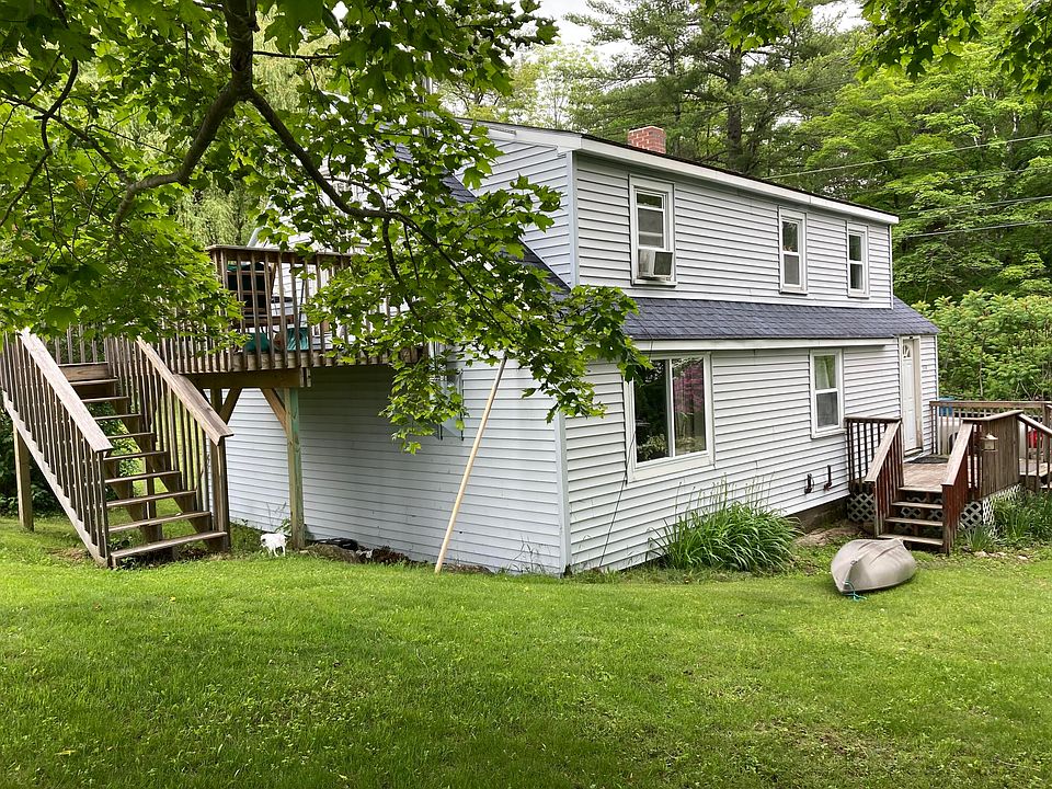 Adorable cape style home two miles out of town. Large living room and three spacious bedrooms offers plenty of room to spread out. The second story primary bedroom has a deck leading to the back yard with lovely views of the field and mountains. Home is being sold as is and needs some TLC but is move in ready. May not qualify for all loan types.