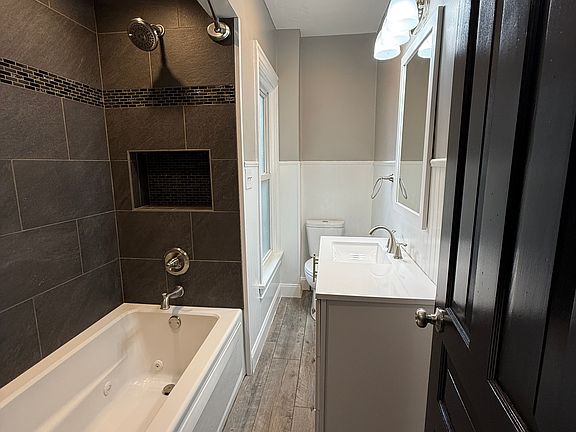 The full bathroom is nicely updated with tile floors, tile shower, large vanity, etc.