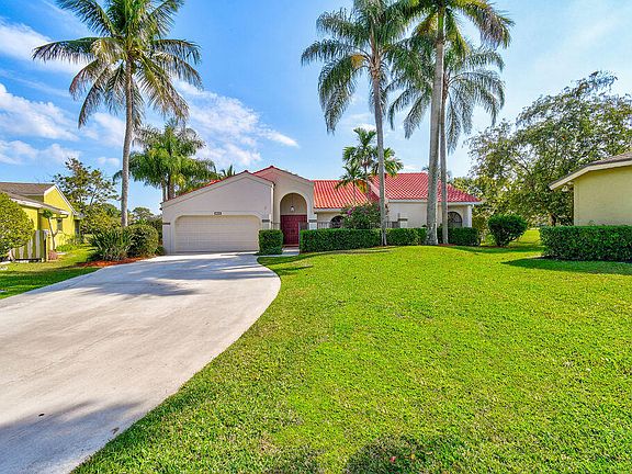 **Seller offering up to $12,000 towards a 2/1 interest rate buy down for Buyers at full asking price!** Don't walk RUN to this beautiful single story pool home, 4 bedroom, 2 bathroom, 2 car garage with oversized driveway. Located in the highly sought after community of Elysium, the home has one of the best lots in the neighborhood due to its positioning being private from either side of the neighbors and having beautiful views of the lake and golf course. Drive up to find lush mature landscaping that includes coconut palms, royal palms, bird of paradise, bougainvillea, crayton myrtle trees, avocado, mango, gardenia, and mini magnolia trees. Walk up through the gated foyer to find the double door entrance. As you walk in you will find vaulted ceilings and beautifully laid (Click See More)) diagonal tile throughout the main living area. The huge family room was recently remodeled with hardwood floors and upgraded recessed lighting. The kitchen includes solid wood cabinetry with upgraded hardware and recessed lighting, new refrigerator (2022), and breakfast bar seating. Sit down and relax in the family room and discover beautiful views of the pool, lake, and golf course. The oversized master bedroom comes equipped with hardwood floors, upgraded fan, large walk-in closet, and windows that overlook the backyard and allow for tons of natural light. Master bathroom boasts a gorgeous solid wood vanity, a beautiful tiled walk-in shower with upgraded hardware, and separate soaking tub. All 3 secondary bedrooms are good size, have ample closet space, and have windows that allow for tons of natural light with upgraded window treatments. Walk out back to your private oasis and enjoy the salt water pool with a spa. The pool patio is completely fenced and overlooks the lake and golf course. Pool was newly resurfaced and changed to a saltwater system by Greenturle pools in (2021). Brand new pool pump (2021). Additional upgrades include: New Maytag washer & dryer with 10 year warranty (2022), hot water heater (2018), central vacuum throughout house, and just renewed Orkin termite bond through this year that is transferred to the buyer and buyer can also extend termite bond for the following year for only $500. Conveniently located near great restaurants, shopping, Turnpike, and nearby parks that are great to go walking, biking, fishing lakes, picnics, and host numerous community activities throughout the year. Located less than 30 minutes from PBI airport.