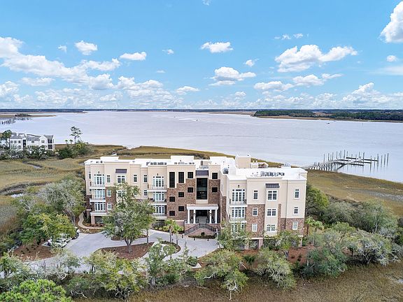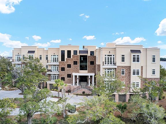 If you are looking for a deep-water dock on Daniel Island and low maintenance condo living, this is the home for you! This luxury condo with marsh and Wando River views, comes with a 35 ft deeded boat slip right in your backyard! You will find perfect lowcountry postcard views from the dining, living and master bedroom at this well-maintained property. You can relax on the long private porch/balcony that extends from the dining area to the living room and the master bedroom. While sitting on this balcony you will enjoy the spectacular vista of the live oaks, marsh, private dock, and the Wando River.You enter this first floor condo from the front door of the building or from garage elevator one floor below. The building foyer has been updated and screams "luxury". As soon as you step into this corner condo, you can feel the quiet and the privacy. Upon entering this condo foyer, you are introduced to the stunning Brazilian cherry hardwood floors, detailed molding, and the 9 ft ceilings throughout. The sitting/office room on the left has beautiful, coffered ceilings, a Juliet balcony and is bathed in natural light, offering a private ambiance with beautiful windows. As you enter the kitchen/dining area to the right breathtaking views immediately grab your attention. This kitchen has all Viking appliances, plenty of high-quality cabinets, lots of counter space, and a large island eating area. You access the walk-in pantry from the kitchen which has even more kitchen storage! The bright dining area has incomparable views of the Wando River. The living area is spacious with a gas fireplace and beautiful French doors that lead to the porch/balcony The hallway is wide and long which will feel like a gallery for artwork. The large master suite has another set of French doors leading to the outside balcony. In this porch area you can enjoy the quiet and watch the bald eagle who nests in the live oaks above the marsh. The master bath with a large jacuzzi bath, shower, vanities and walk in closet has the same impressive views. Two more bedrooms have private baths and huge walk-in closets. This condo features numerous planned storage areas, and the sizable laundry room provides even more storage options. Central vacuum and two garage parking spaces come with this unit. Two new air conditioning units, two new hot-water heaters, fresh paint and custom drapes were recently installed. All the particulars for the recent building renovations are available to buyer. Brand new exterior, and new windows and doors are just a few of the projects included in the building renovations. The building is very distinctive with its beautiful dock, new landscaping, and renovated roof-top deck with panoramic views. The condo could not be more private, yet you are in walking distance to grocery shopping, restaurants, concert stadium and recreation center. Biking walking trails are also close by. This is a must-see luxury condo with a private boat dock on Daniel Island!!