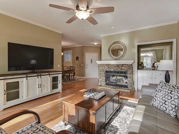 GORGEOUS, MOVE IN READY, ALL BRICK HOME WITH STUNNING VIEWS OF THE GOLF COURSE (1st HOLE FAIRWAY) AND COVE! This 3 bedroom/2 bath home is full of beautiful features including lake and fairway views from the rear of home and updates including new carpet in the hall and bedrooms! Natural light spills throughout the flowing layout as you move with ease from one room to the next! The large living room offers lake views, stunning fireplace, wetbar and easy access to the formal dining room and kitchen! The spacious and bright eat-in kitchen boasts granite countertops, bar for seating, stainless steel appliances and gorgeous water views! The owner's suite offers private access to the deck and lake views, walk-in closet and spa-like en suite with double vanity, soaking tub and huge walk-in shower! Each additional bedroom features ceiling fans, ample closet space and gorgeous shared full bath. Enjoy relaxing or entertaining with family and friends on the huge deck or wrap around patio that looks out onto the gorgeous cove! Across the street from the country club and marina!