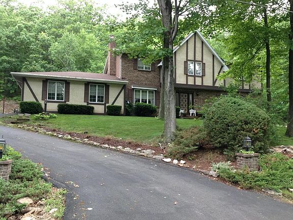 Pride of ownership shows well in this beautiful 4 bedroom, 2.5 bath spacious English Tudor situated perfectly on 1+ acre tree lined street in Conyngham Mt. Estates. This lovely home features foyer entry, eat in kitchen with access to 4 season room, formal dining room, comfortable living room highlighted by exposed brick wall fireplace, lower level extra-large family room with second stunning brick wall fireplace, security system, new heat pump, french drains around perimeter of home, paved driveway and 2 car garage. Truly a must see property!