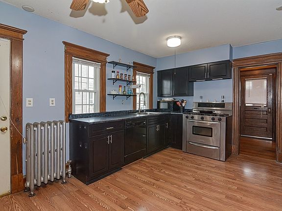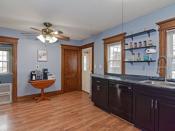 This attractive-looking 3 bedroom, one and 1.5 bathroom home has seen many updates over the recent years and is nicely located on a lovely tree-lined street with sidewalks! The home features a modern kitchen with a large pantry, stainless steel five burner gas range and stainless steel refrigerator, an cozy living room w/ fireplace and gorgeous coffered ceiling, and a sun-filled dining room with a large bay window and a French door leading to the rear deck with an awning. There is also a modern half bathroom on the first floor and a full bath on the second floor with a new vanity and sink. Updates include a new roof in 2015, replacement windows, a new overhead garage door in 2019 and updated electrical . Other great features include beautiful natural woodwork, hardwood flooring, natural gas utilities and a nice clean usable basement with oversized windows. Multiple offers.....Highest and best offer deadline by Tue Mar 5th 5pm