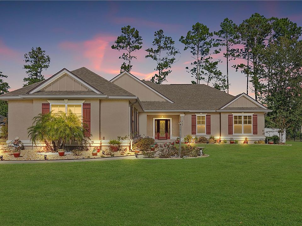 Back on the market at NO FAULT to seller.Don't miss out on this custom-built home that is located in the gated community of Fiddlers Cove. This corner lot, 4 bedroom/2 bath home is full of upgrades. The open concept plan has a beautiful accent wall, and the kitchen is equipped with stainless-steel appliances, pull out trays in the cabinets and large breakfast bar. The master suite offers a separate shower and tub and large walk-in closet. The beautiful bathroom chandelier has a hidden ceiling fan within. The 3-car garage has a system that will raise boxes, etc into the floored attic. The exterior includes low-maintenance stucco and a screened in back porch with tiled floor, as well as concrete rear patio for grilling overlooking the fenced in backyard. The gorgeous, gated fiddlers cove offers a community pool, fitness, playground, and a sports court. The lawncare is included in the HOA dues. This home is minutes from I-95- a quick commute to Brunswick, Jacksonville or the beaches! Professional pics coming SOON!