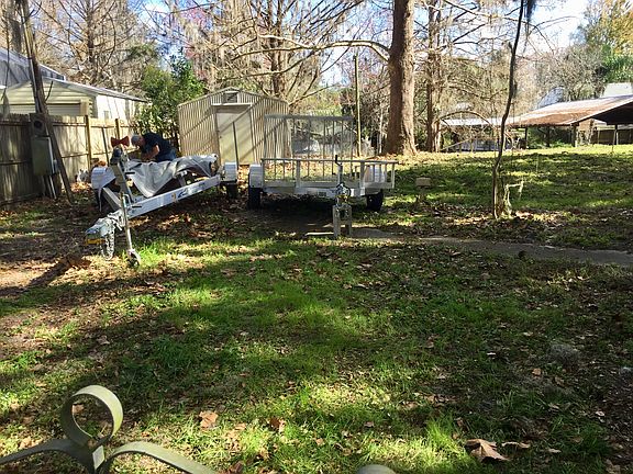 Double bulk headed waterfront Lot. Large covered boat house, metal storage shed, Well and Septic. Quiet neighborhood dead end road. Park your RV, build a fisherman’s dream or retire to the laid back life on the river. Possible owner financing with good credit and 20% down.