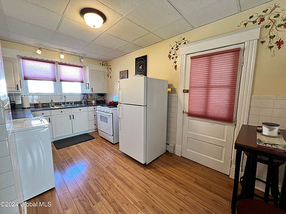 Looking for a well maintained move in ready 2 Family on Amsterdams South Side ? Both units afford 2 beds & 1 bath along with spacious living & dining rooms , hard wood under carpet 2nd floor &possible on first floor as well . Two finished rooms in the attic provide additional living space & storage for the second floor unit . Need more storage? With Sizable enclosed porches , oversized 1 car garage & full basement you will have plenty. No running up & down the stairs to the basement to do laundry with handy washer/dryer hookups in each unit . New roof & freshly painted exterior trim add to the low maintenance outside