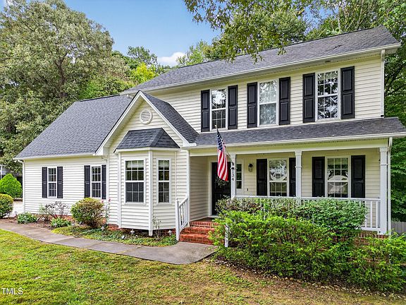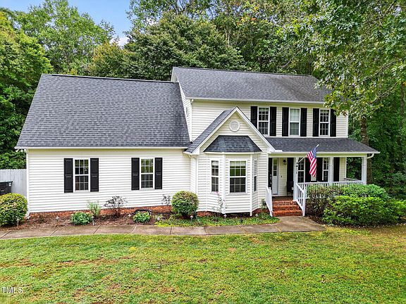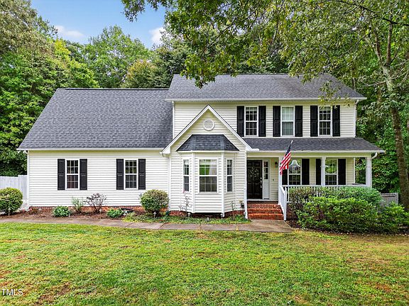 This charming home sits on 3.24 ACRES and offers a rare combination of space, privacy, and convenience you've been looking for. Featuring a 2 CAR GARAGE, backyard retreat, versatile layout, it's the perfect place to call home. On the main floor, you'll find a bright and open flow featuring the kitchen, breakfast area, dining room, living room and a half bath. Upstairs features the primary suite with private bath, 2 additional guest rooms, full bath, laundry room, and bonus/flex room (equipped with full bar). *Roof replaced in 2019 and dishwasher replaced in 2023* The outdoor living space truly sets this home apart. The covered front porch overlooks a spacious front yard that provides privacy from the street. Enjoy a backyard made for relaxing and entertaining. The SCREENED PORCH (with ceiling fan) and large deck overlook a spacious fenced back yard that backs up to peaceful woods, offering both privacy and plenty of space for play or pets. For you nature lovers, the property also features lots of mature trees, as well as a peach tree and prickly pear bush in the front yard that both bear fruit, and wild strawberries that grow in the front and back yard. Additional highlights include a welcoming flagstone fire pit patio and a versatile 16' x 20' shed with power - featuring lights, outlets & shelving. Whether you need extra storage, a workshop, a hobby space, or even a playhouse, this shed offers endless possibilities! Home also features generator hookup on the electrical panel and utility sink in garage. All of this comes in a quiet, peaceful setting convenient to shopping, dining, and major highways.