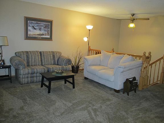This split level home features a spacious living room with new carpet and a bay window allowing for natural daylight. The eat-in kitchen has lovely wood laminate flooring and patio door leading to the back deck. All appliances are brand new and include stove, refrigerator, dishwasher and microwave. Two bedrooms and full bath are also on the upper level. The lower level features a beautiful family room with gas fireplace and knotty pine walls, a third bedroom, 3/4 bath and laundry. There's a work shop in the attached over-sized two car garage. New landscaping with prolific producing cherry and apple trees in the back yard. New shingles in 2017. You'll enjoy the large deck overlooking the semi-private backyard! All appliances and some furniture included.