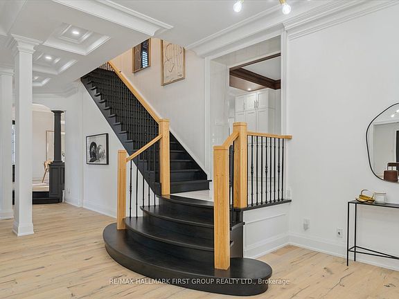 Welcome to your dream home within a stunning Lakeside community. Nestled just steps from Whitby's waterfront. This spectacular 4-bedroom residence offers over 4000 sq ft of thoughtfully designed living space. Wake up to serene views and enjoy your morning coffee on the wraparound porch overlooking a sprawling green park and peaceful river, perfect for kids to play, fish, or launch a paddleboard right from your doorstep. Walk in to stunning grand 11-ft ceilings and a two-way fireplace which set the tone for sophisticated living. Grand 8-ft doors, California shutters through out, crown mouldings, and a custom waffle ceiling in the office add to the upscale feel. The light-filled kitchen features Bosch appliances, quartz countertops, and a 6 burner gas stove, ideal for family life or entertaining. A main-floor bedroom with a sleek 3-piece bath offers flexible space for guests or multi-generational living. Upstairs, the primary suite offers a spa-like ensuite with heated floors and a Victoria + Albert soaker tub, built in closets allow for a ton of storage. Enjoy a private outdoor living space from the second floor with access to the above the garage loft. The loft provides potential for a quiet retreat perfect for a home office or creative space. The basement features a separate entrance the exterior walls, plumbing and electrical are completed making this basement easy to finish. Ideal for a future in-law suite or rental. This one-of-a-kind property offers luxury living and nature at your doorstep in one of Whitby's most desirable settings. Enjoy tons of outdoor space to enjoy with out the maintenance. Do not miss this opportunity, come check this property out today!