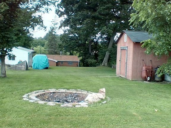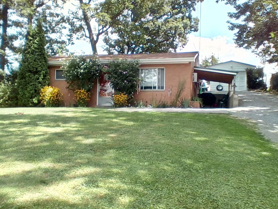 Brick Ranch style home Ready to move in. New roof, furnace, well pump, pressure tank, hot water tank with in last 5 years Bathroom remodeled large stall shower 60" shower enclosure New hard wood floors and carpets. 1 stall detached garage Full attic space Fire pit to have evenings sitting around fire with friends and family.