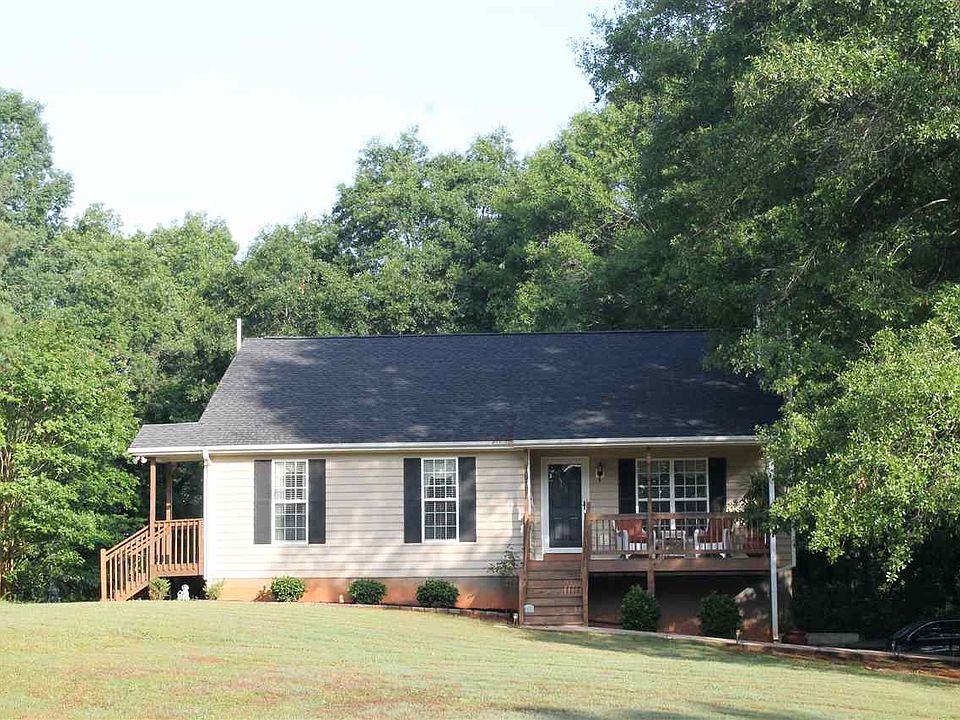 Private, Secluded Lake home, Just around the corner from Big Water Marina on 1.36 acre lot with dock in place! Two bedrooms and two baths on main level,, Gas log the water hardwood floors basement has recently been sheetrocked and finished, just waiting for new buyers to paint and trim and