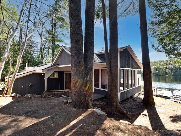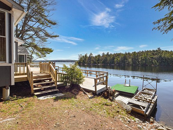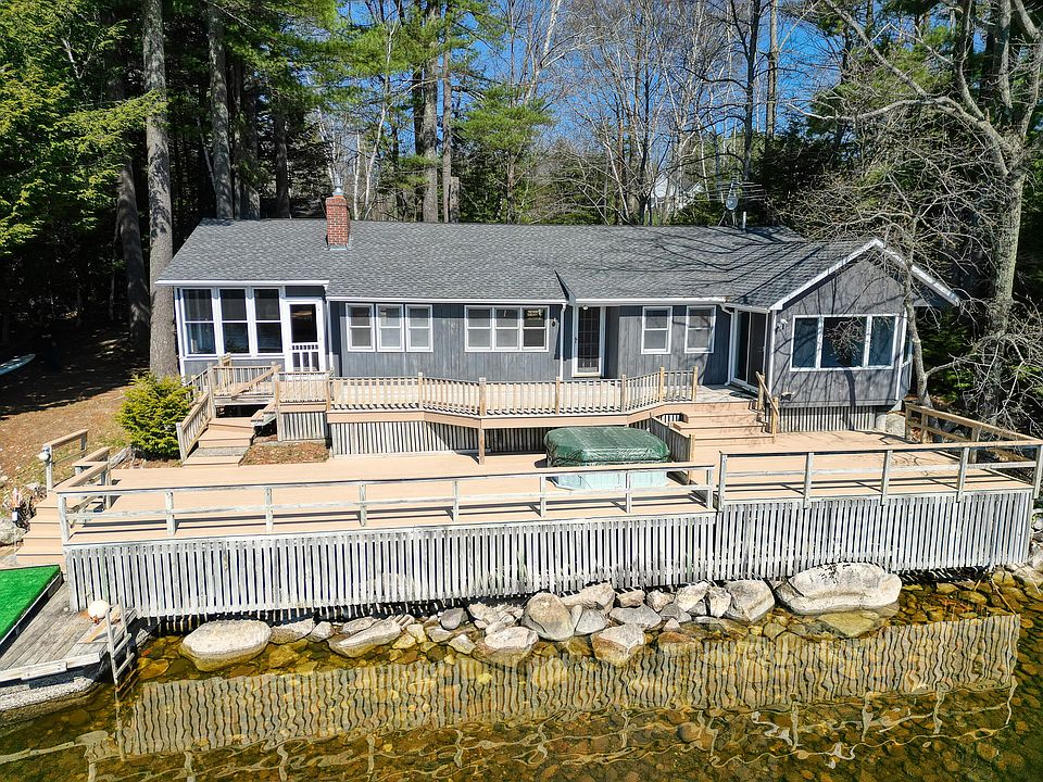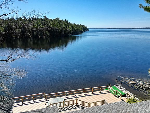 It does not get more waterfront than this! Located on a quiet private road, this beautiful 2 bedroom, 3 full bath boasts sweeping views of Great Pond from almost every room. Host your guests on the two tier deck, listen to the loons from your screened-in porch, gaze at the stars from your hot tub or simply enjoy your views from the comfort of your primary en suite. There is a no-wake zone between shore and Shute Island, so peace and quiet are always in season. Complete with a second bedroom with it's own full bath and a guest full bath great for changing after a day on the water. Tons of storage throughout. And a two car garage with power also helps store all of your water toys out of season.