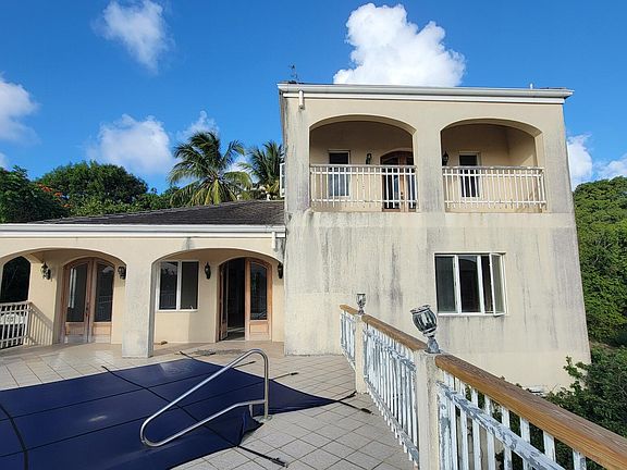 134 Anna's Hope- just .7 mi. from Shoys Beach Parking area and nestled in a peaceful cul-de-sac within a gated community, this property boasts spectacular views of the Caribbean Sea! The main house features 3 spacious bedrooms and 3.5 baths, with elegant walk-out French doors leading to a fabulous patio, pool, and hot tub--perfect for entertaining! An airy open-concept living area seamlessly connects the dining and kitchen spaces. The master suite features a private balcony and breathtaking views. Plus, a second unit downstairs offers a 1 bed/1 bath apartment that that can be used for income or guest space. Add your personal touch and some TLC to this property and bring your Caribbean dream home to life! This property is being sold "as-is" at an incredible price.