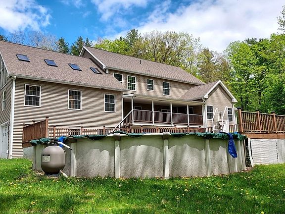 Custom built phenomenal home on 5.81 wooded acres! If privacy and space is what you are looking for, then look no further! This home is spacious with room for everyone! Features 12 rooms, 4 bedrooms and 4 bathrooms!!! This home boasts first floor master bedroom suite with walk in closet, lovely bathroom and adjacent laundry room, family room with gas fireplace and cathedral ceilings, amazing kitchen with maple cabinets, granite countertops and island w/prep sink. The great room is perfect for entertaining guests or family featuring a wet bar and an ample amount of space. On the second floor you will find 3 additional bedrooms and full bathroom. The lower level boasts even more space featuring a large rec room, office/study, 3/4 bathroom and a utility room! This home doesn't end here; outside you will find an above ground pool with deck, lovely stamped concrete patio, TREX covered porches and so much more! This is a must see home!!!