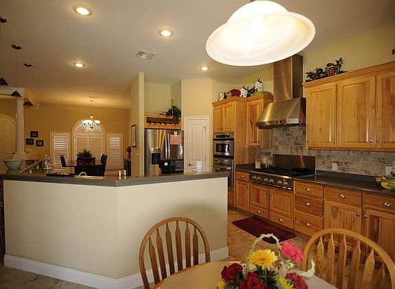 Luxurious Executive Home in private quiet subdivision of South Gate. This spacious family home features split bedroom floor plan with private office, high ceilings, and fireplace. The gourmet kitchen is a chef's delight with six burner gas cooktop, convection oven and microwave, all top of the line stainless appliances and solid surface countertops. The kitchen, open family room and master bedroom all walk out into the screened lanai with heated salt water pool with new pump & chlorinator in 2015 and hot tub. Enclosed lanai looks over private back yard with your own putting green. The master bath features large tile shower with two shower heads and double vanity. A new Rinnai tankless water heater has just been installed. The laundry room has lots of cabinets as well as a soaker sink, walk thru to the over sized garage with work bench.