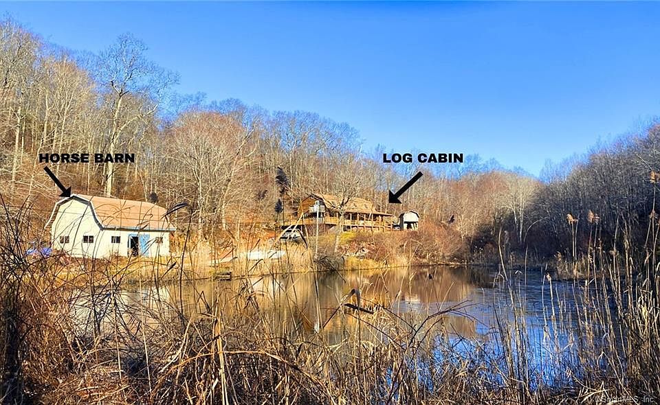 HIGHEST & BEST OFFERS DUE BY TUESDAY 1/10 AT 10PM. If you are looking for seclusion, privacy, wildlife, acreage, and a place for your horses, STOP looking! 28.67 acres with two ponds, small waterfall, some trails and NO neighbors in sight! The property features a two-stall horse barn and an additional outbuilding (already stacked with firewood for you!). Log cabin with 4 bedrooms and 2.5 bathrooms down a long PAVED shared driveway with this cabin as the very LAST property. Abuts the state forest for even MORE privacy. You will want to spend hours on the wrap-around covered porch taking in the breathtaking BEAUTY of the ponds, wildlife, and trees. Stay warm and cozy by the gorgeous stone fireplace on the snowy days to come. Conventional/cash only as the home needs work, but the sweat equity gained will be well worth it in this market! PLEASE: DO NOT DRIVE DOWN DRIVEWAY WITHOUT AN APPOINTMENT!