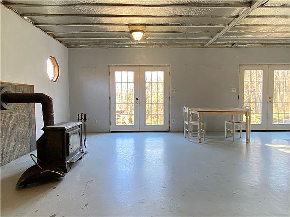 Nearly 2 acres, a 2 car garage & a 3 bedroom, 2 full bath house project need someone to complete the work to turn it into a peaceful country retreat. Room for an island in the spacious open concept kitchen & living area where you can fire up the wood stove & create a relaxing atmosphere. The main level also has 2 bedrooms, a full bathroom & the laundry/utility room as well as a coat closet in the entryway. There are 2 sets of glass French doors leading to the beautiful tree lined backdrop. The primary bedroom suite can be accessed from downstairs as well as it’s own entrance in the back of the home. The entirety of this suite is studded out waiting for your finishing touches. The 2 car detached garage not only provides parking but plenty of room for storage or projects. If you are looking to get out of town to a quiet & scenic location this is your chance!