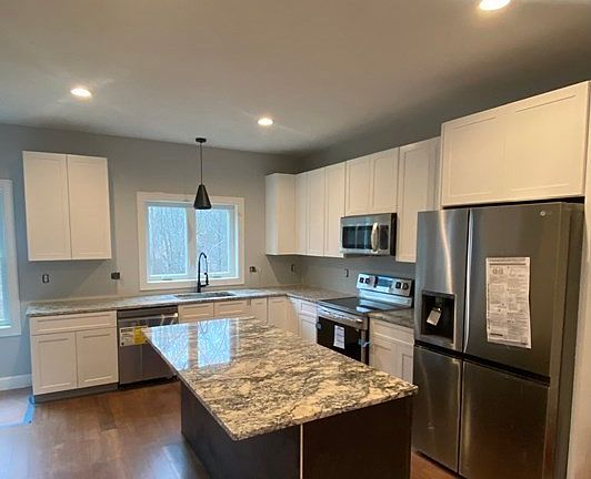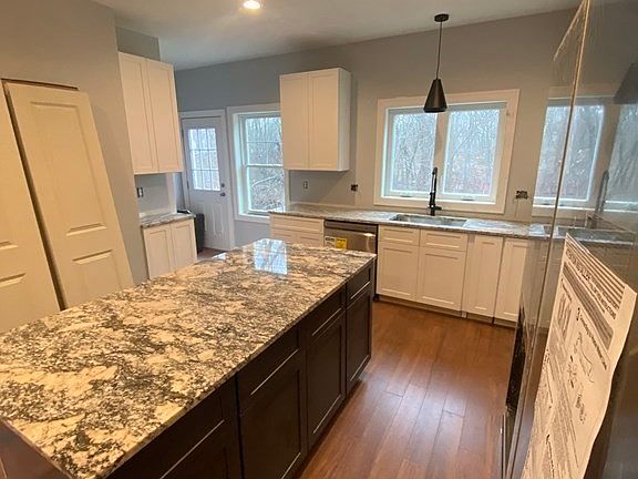 New Contruction 1/2 Duplex. Beautiful three story almost 2000 sq foot home with wood floors on first floor and second floor hallway. Expansive open first floor with large kitchen and living room. Second floor features 3 carpeted bedrooms, full bath with tiled floors and a separate laundry room. Third floor features large bedroom area and oversized master bath and two walk-in closets. Full walk out basement with a private wooded lot. Tucked away on a quiet dead end street but close to train, highways and shopping. photos of similar unit previously completed.