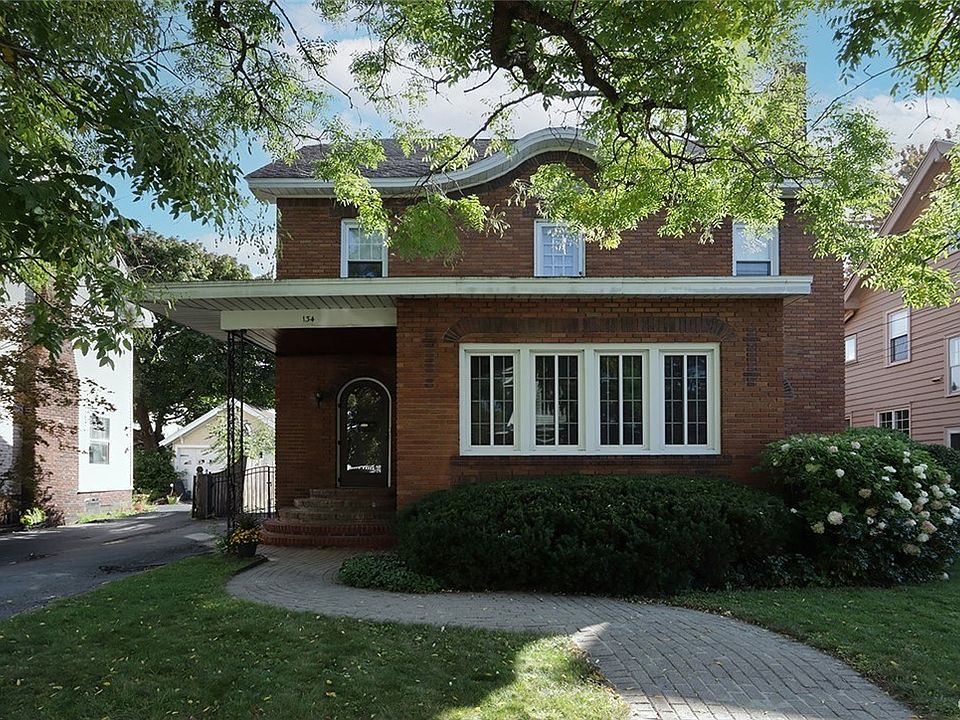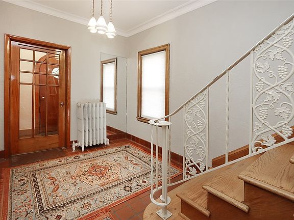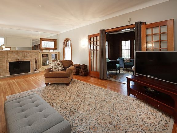 Charming brick colonial with iron gate that opens to the fenced yard and 2 car detached garage. An arched door opens to the main entry and lovely staircase. You will be impressed with the custom details throughout including gleaming hardwoods, windows with lead detail and arched doorways. Entertaining will be a joy in the gracious formal dining room with ceiling fan. The light and bright eat-in kitchen boasts oak cabinets, refrigerator/freezer, gas cooktop, dishwasher, disposal, microwave, pantry, quartz countertops and door that leads to a covered deck and backyard. Sit back and relax in the living room with cozy brick woodburning fireplace surrounded by custom built-ins. Double French doors open to a magnificent Florida/sun room enhanced by walls of windows and ceiling fan. There is also a handy powder room. The primary bedroom with walk-in closet, 3 additional bedrooms, full bath and cedar closet are on the upper level. The third level has a fifth bedroom, full bath, storage/train room and study area. The washer and dryer in the neat basement convey. Perfect location to schools, downtown, restaurants, universities and hospitals!