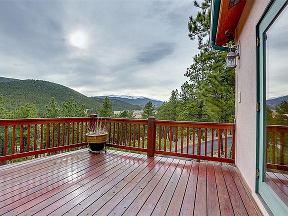 Welcome home to your mountain oasis! Enjoy the magnificent views of Mt Evans and the entire Deer Creek Valley from the floor to ceiling windows in this stunning custom home. Luxury mountain living at its finest, with a bright, open floor plan that is perfect for entertaining! The expansive main level features 3 sets of french doors leading to the huge deck. Gorgeous wooden beams and handcrafted stonework highlight the lovely great room. The spacious main floor master features a soaking tub and steam shower. Cooking is a dream in the large kitchen with granite countertops, ss appliances, walk in pantry and tons of cabinets, complete with a breakfast nook & formal dining. The lower level has a mother-in-law suite with bathroom and full kitchen. Also on the walk out lower level is a family room, fireplace, wet bar, 2 more bedrooms & full bathroom. Oversized 3 car pass-thru garage & paved drive. Located on gently sloping, wooded 6.7 acres with easy access to 285. You will love living here!