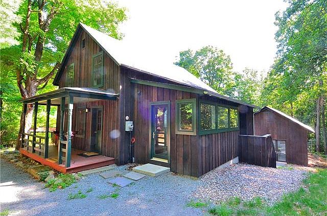Charming, rustic, just recently, tastefully restored 5 room, 1.5 bath, 1900's period 2 story home with new separate heated 20'x32' art studio/workshop/office with skylights , set back on 4+ totally private acres on top of Shawangunk Mountain Ridge & minutes to the historic art hamlet of Cragsmoor, home of the Hudson River School of Painters, Bear Cliff Reserve & Ice Caves Mountain. Rich wood interior, wainscoting, hardwood floors and ceilings, lovely stone fireplace. Fabulous new kitchen w/ cherry cabinets, self closing drawers, stainless steel appliances, granite counters, cathedral ceiling. New baths, one has ceramic tile & pedestal sink. Over $200K of upgrades & improvements. Located at the end of quiet country road with circular drive. Enjoy the solitude of nature, wildlife, the sounds of birds. A perfect secluded year round retreat with a studio that is perfect for artists, writers, musicians & craft people. A rare find!