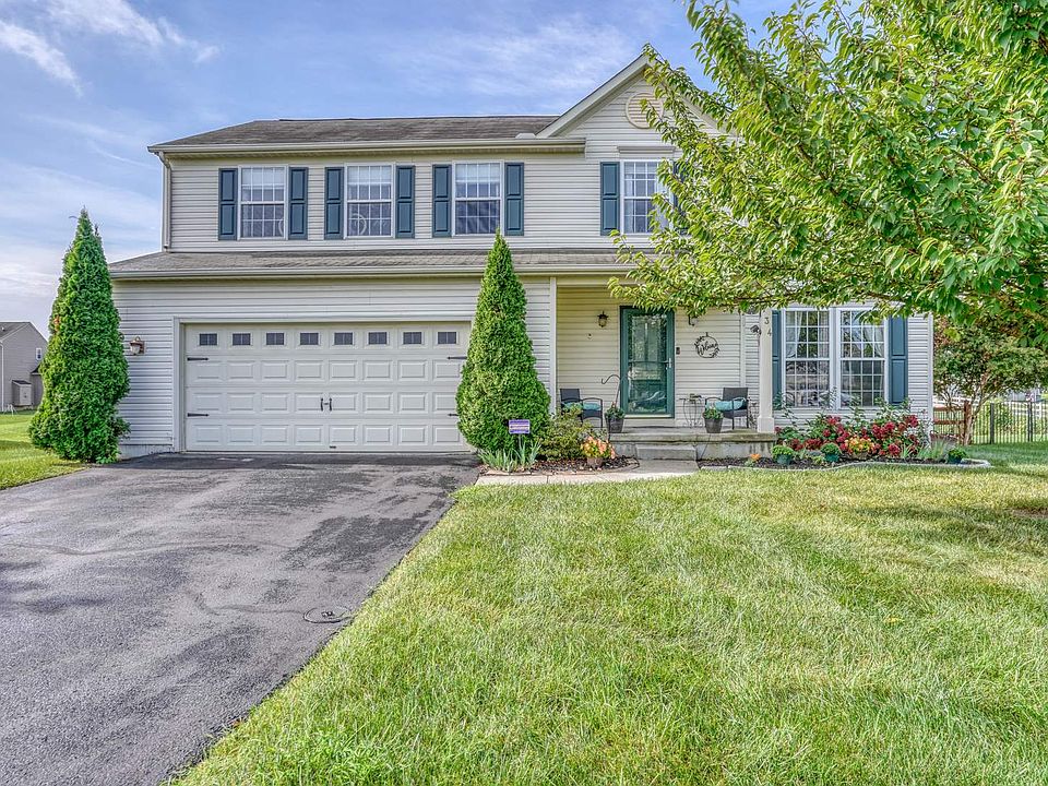 Welcome to your next home! This stunning 5 bedroom, 2.5 bathroom house is situated on a private street within the community of Providence Crossing on a premium lot facing a courtyard. This exceptional property is nestled within a friendly community that offers walking trails, a playground, and a recreation area for residents to enjoy. As you step inside this meticulously maintained home, you'll be greeted by a grand foyer adorned with new luxury vinyl plank flooring that seamlessly flows through the spacious kitchen, large breakfast room, and the extended family room. The warm and inviting family room features a cozy natural gas fireplace, perfect for those chilly evenings. The gourmet kitchen boasts granite countertops, a stylish tile backsplash, and upgraded stainless steel appliances - including a Bosch dishwasher. The kitchen includes a pantry, a center island, and a breakfast bar overlooking the bright and airy breakfast room with floor-to-ceiling windows and French doors leading to the composite deck. The serene fenced-in backyard provides an oasis for relaxation and entertainment. Make your way through the upgraded glass door, creating privacy into the generously sized formal dining room, complete with hardwood flooring that continues into the sophisticated formal living room. Upstairs, you will find 5 generously sized bedrooms, each with ample closet space. The luxurious master suite includes crown molding, a walk-in closet, and a spa-like bathroom with a dual vanity, a large soaking tub with tile surround, and a tiled stall shower. The large dry basement offers endless possibilities for creating additional recreational space and is already roughed in for a full bathroom. Move-in ready and conveniently located for an easy commute in any direction, this spectacular home is waiting for you to make it your own!