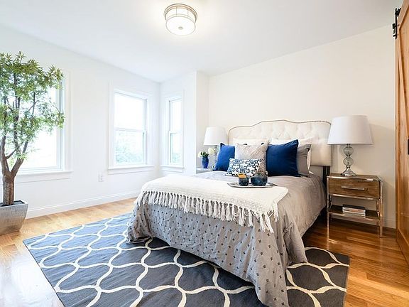 Contemporary and fully renovated with an open floor plan, this unit consists of 2 bedrooms and 2 baths and offers high-end features throughout, with gleaming hardwood floors, stainless steel appliances, granite countertops. The light-filled master bedroom includes a walk-in closet and an en-suite master bath with a sliding barn door. There is in-unit laundry hookups, custom closets, and California faucets fixtures. A large, private back deck is perfect for entertaining and grilling. Additional storage, and a low condo fee make this unit the perfect choice for city living. Located in desirable Winter Hill, this unit is just minutes from Assembly Row, Shops and Restaurants, Mystic River Tours, and the future location of a Green Line T station.