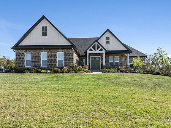 Introducing a stunning, all brick ranch-style home with a finished walkout basement, nestled on a spacious 2-acre lot in Hidden Creek Estates. This meticulously crafted home boasts an exceptional level of finish and attention to detail throughout. Step inside and experience the thoughtfully designed layout, featuring a split bedroom design that offers privacy and tranquility. The open concept living space is perfect for entertaining, with ample room for gatherings and socializing. Working professionals will appreciate the private soundproof office, providing a quiet and productive space to work from home. The lower level of this remarkable home offers additional guest quarters, complete with an en suite bedroom and an additional full bathroom. A convenient kitchenette adds functionality and convenience. The large flex space in the lower level provides endless possibilities - whether you envision a home gym, a media room, or a play area for the kids. Don't miss the opportunity to own this two-year-new home that combines luxury, functionality, and privacy in a picturesque setting. Schedule a showing today and experience the best of ranch-style living on 2 acres.