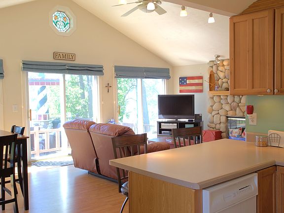MARBLE LAKE: Beautiful and spacious year round home. 4 bedrooms, 3 full baths, incredibly gorgeous family room w/stone fireplace, cathedral ceilings and full view of Marble Lake through wall of sliders onto a beautiful deck. You will find two bedroom up, with vaulted ceilings and an additional full bath. Downstairs are two bedrooms w/egress windows, a full bath and laundry. Outside boasts a beautiful view of the lake and newer landscaping. This company makes no warranty or representations aboutthe contents of this data. It is the responsibility of the parties looking at the property to satisfy themselves as to the accuracy of this information. Taxes were obtained from the local assessor and the taxes could change for the buyer after a closed transaction.